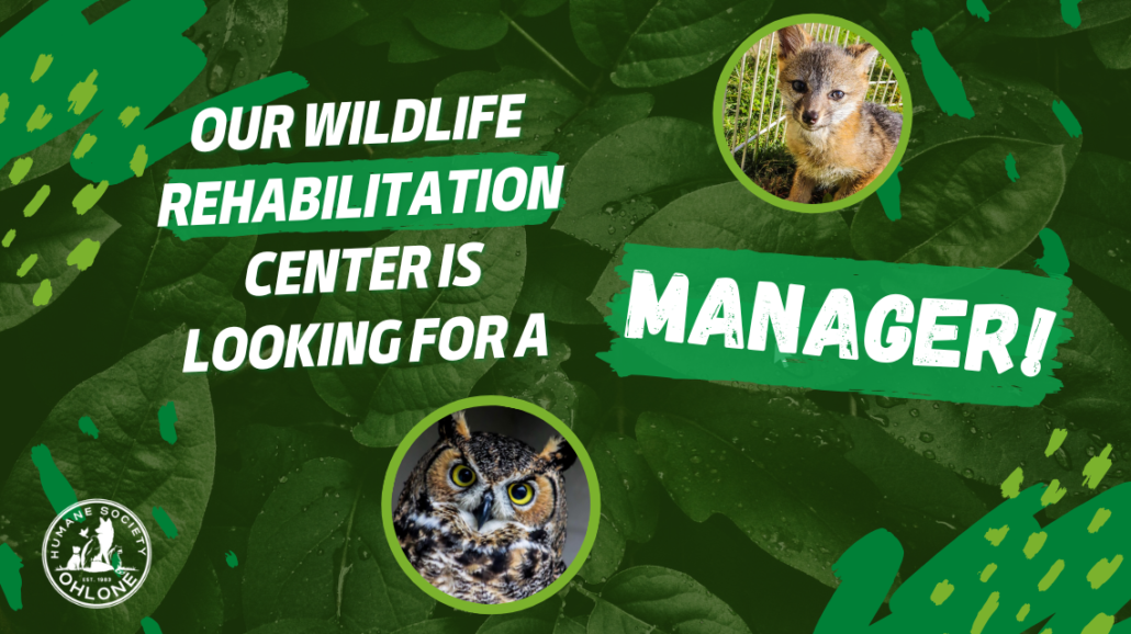 The OHS Wildlife Rehabilitation Center is looking for a manager! Are you passionate about wildlife and have experience working with native avian and mammal wildlife? Read the job description below for more details to see if this position would be a good fit for you. Resumes and cover letters should be sent to angela@ohlonehumanesociety.org.